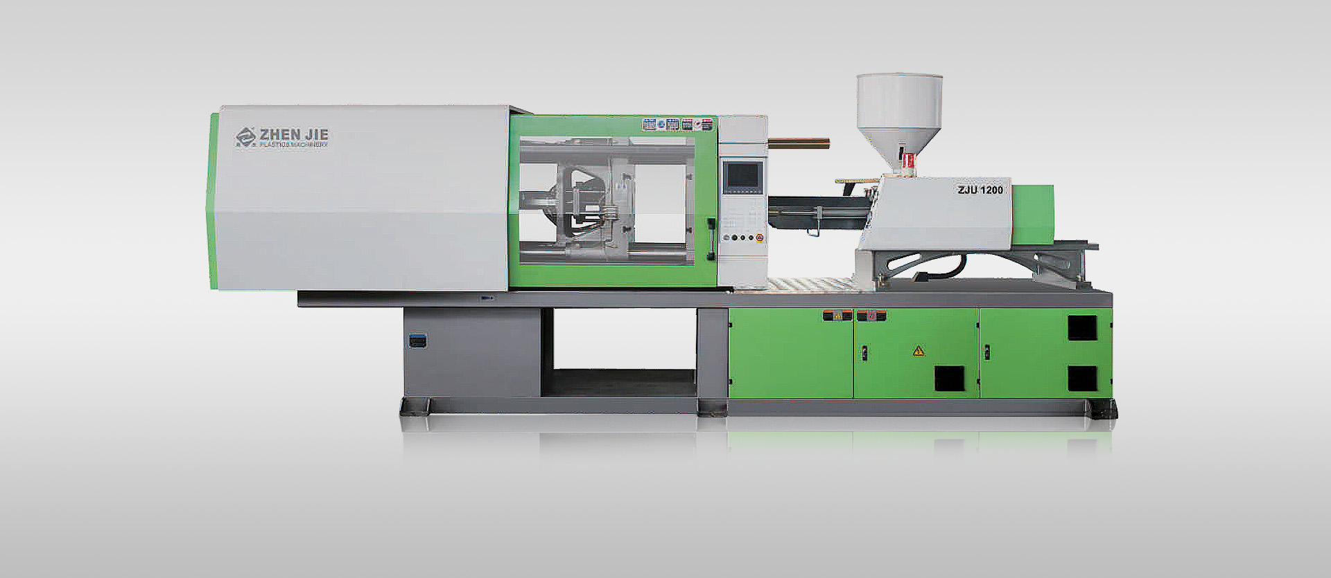 公司自主品牌"震杰"ZJ系列注射量为45-4000Tons,合模力为500-8800KN注塑机及高效节能比例变量泵系统和电木射出成型机,是集先进科技和市场新需求而研制的优质产品。适用于生产各类高精度和高强度的塑料制品。产品采用CAD、CAM技术优化设计及高精全自动数控机床加工,各部件均经过精密加工或筛选,并采用世界级优质品牌元件,按照严格的工艺要求进行生产、装配、调校而成。产品结构新颖,性能稳定,高效节能,备受海内外用户青睐。